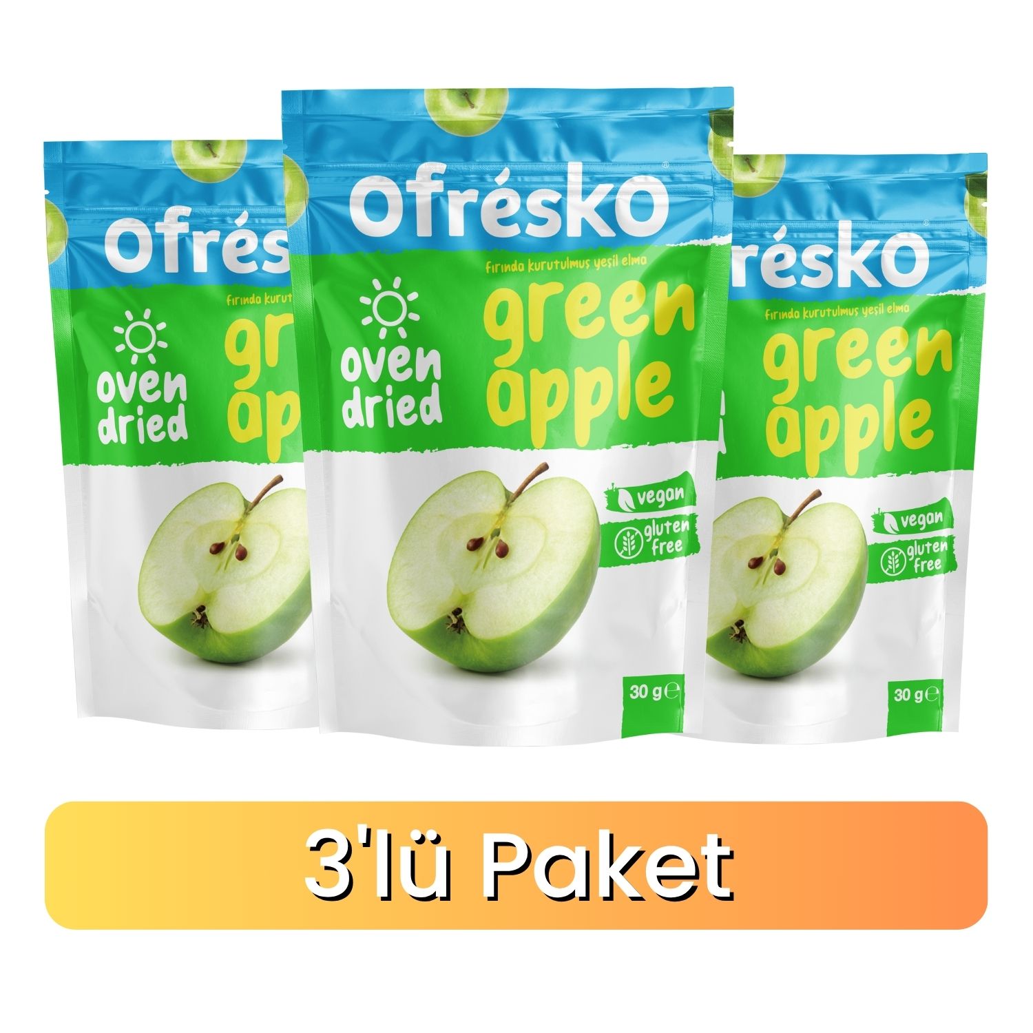 Ofrésko fırınlanarak kurutulmuş yeşil elma tüm vitamin, mineral, lif ve posa gibi sağlık bileşenlerini büyük ölçüde korur. Her pakette dalından koparılmış tazelik ve lezzette meyveler içerir. Kurutma işlemi mikrobiyolojik süreçleri yavaşlattığı için ürünün bozulmasını geciktirir ve raf ömrünü uzatır.