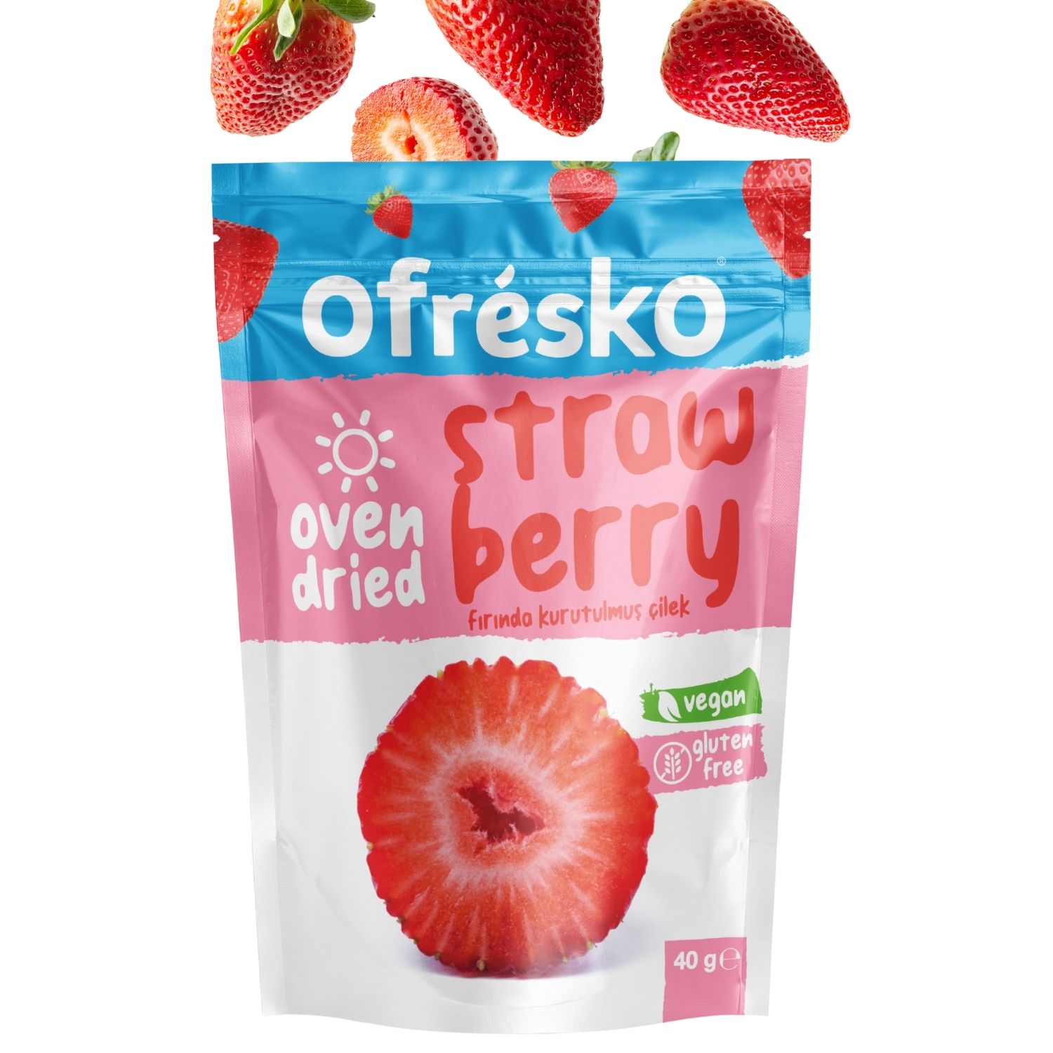 Tüm Ofrésko ürünleri %100 yerli olarak Türkiye’de üretilir, kontrollü tarım uygulaması ile yetiştirilen meyvelerimiz sertifikalı yerel üreticilerden ve bahçelerimizden sağlanmaktadır. Ofrésko fırınlanarak kurutulmuş çilek yalnızca meyvenin kendi şekerini içerir, ekstra bir tatlandırıcı veya katkı maddesi içermemektedir.