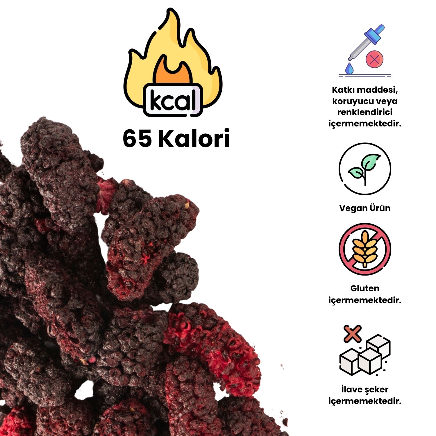 Ofrésko kuru karadut tüm vitamin, mineral, lif ve posa gibi sağlık bileşenlerini korur. Her pakette dalından koparılmış tazelik ve lezzette meyveler içerir.