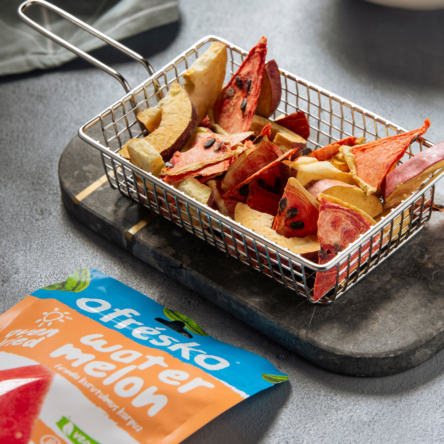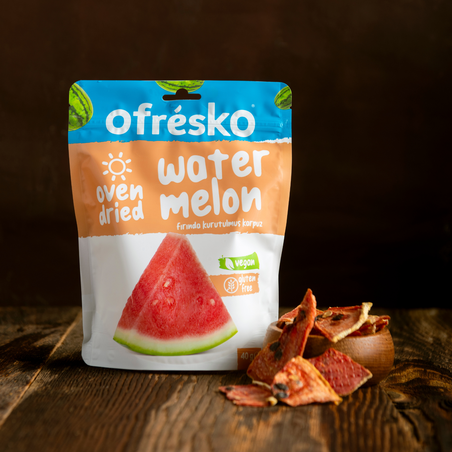 Ofrésko fırınlanarak kurutulmuş karpuz tüm vitamin, mineral, lif ve posa gibi sağlık bileşenlerini büyük ölçüde korur. Her pakette dalından koparılmış tazelik ve lezzette meyveler içerir. Kurutma işlemi mikrobiyolojik süreçleri yavaşlattığı için ürünün bozulmasını geciktirir ve raf ömrünü uzatır.