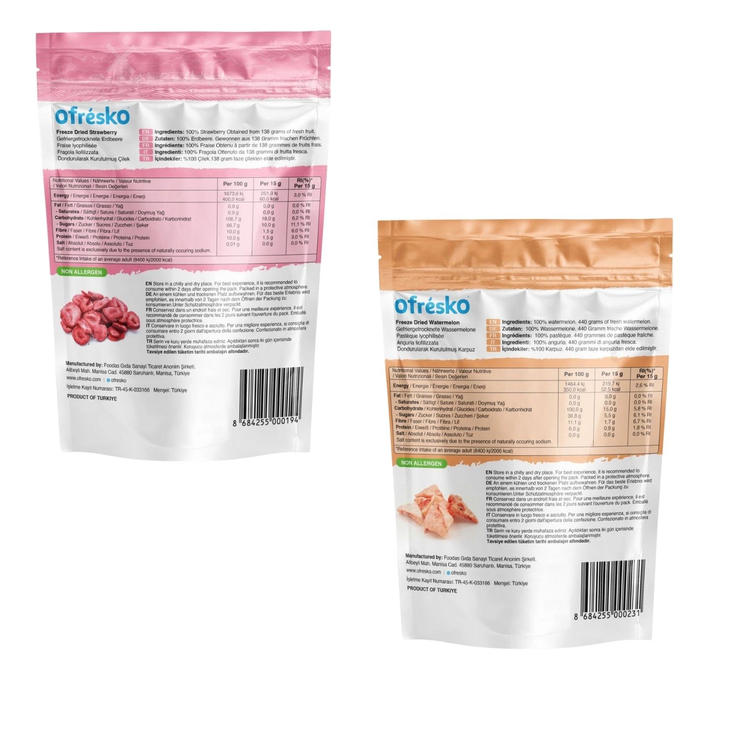 Tüm Ofrésko ürünleri %100 yerli olarak Türkiye’de üretilir, kontrollü tarım uygulaması ile yetiştirilen meyvelerimiz sertifikalı yerel üreticilerden ve bahçelerimizden sağlanmaktadır. Ofrésko kurutulmuş meyveleri yalnızca meyvenin kendi şekerini içerir, ekstra bir tatlandırıcı veya katkı maddesi içermemektedir. Dondurarak kurutma yöntem en sağlıklı ve en iyi meyve kurutma yöntemi olarak kabul edilir. Dondurma işlemi mikrobiyolojik süreçleri yavaşlattığı için ürünün bozulmasını geciktirir ve raf ömrünü uzatır.